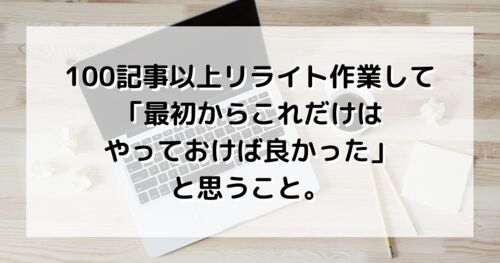 100記事以上のリライトをした際に「最初からこれだけはやっておけばよかったな〜」と思うことやリライトの際に行ったことをメモしています。